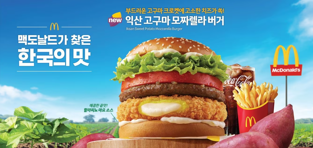 맥도날드는 7월 10일 '한국의 맛' 프로젝트의 2025년 신메뉴 '익산 고구마 모짜렐라 버거'와 '익산 고구마 모짜렐라 머핀' 2종을 출시했습니다. '한국의 맛' 프로젝트는 2021년 론칭 이후 매해 이어지고 있는데요, 품질 좋은 국내산 식재료를 적극 활용해 새로운 맛과 즐거움을 선사하면서 긍정적인 평가를 받아오고 있었습니다. 이번에 '익산 고구마 모짜렐라 버거'가 출시되면서 SNS등 많은 관심을 모으고 있는 것을 보아 꽤 성공적인 행보를 보여주고 있습니다.