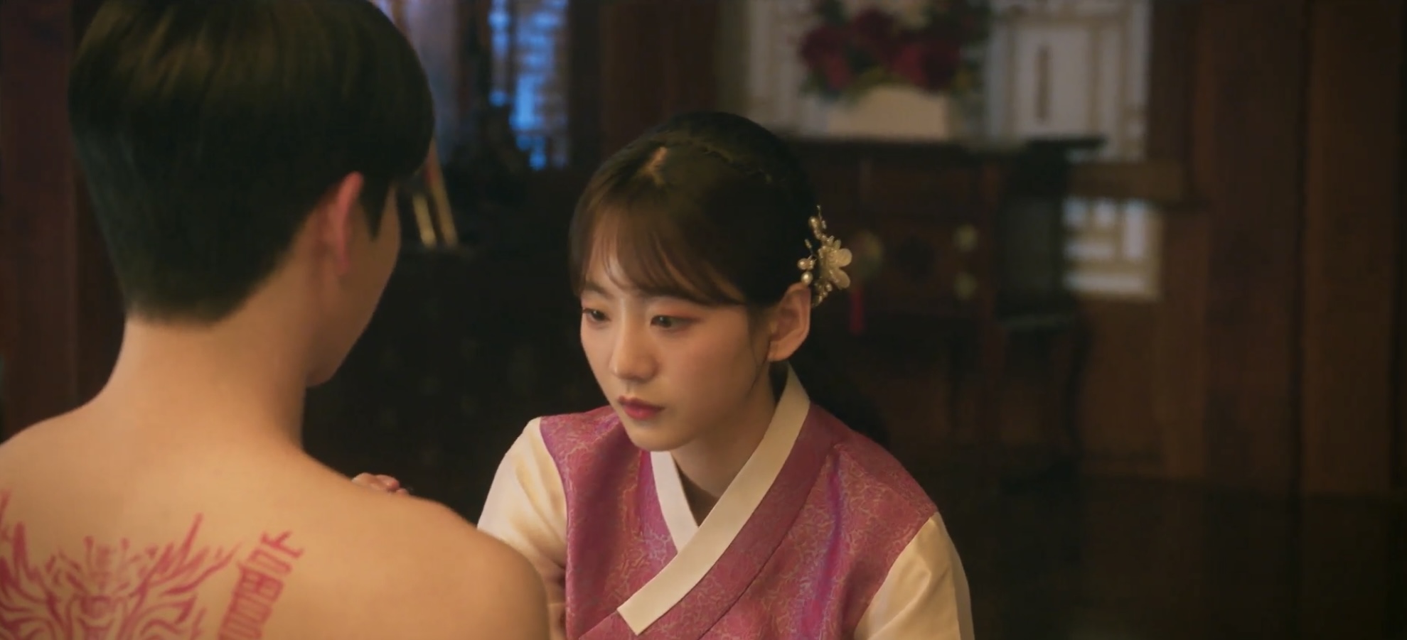 악귀를 빼내고자 신어머니께 데려왔는데 이렇게 두 얼굴을 보여주는 중. 추영우 배우님 1인 2역 연기가 대박입니다.