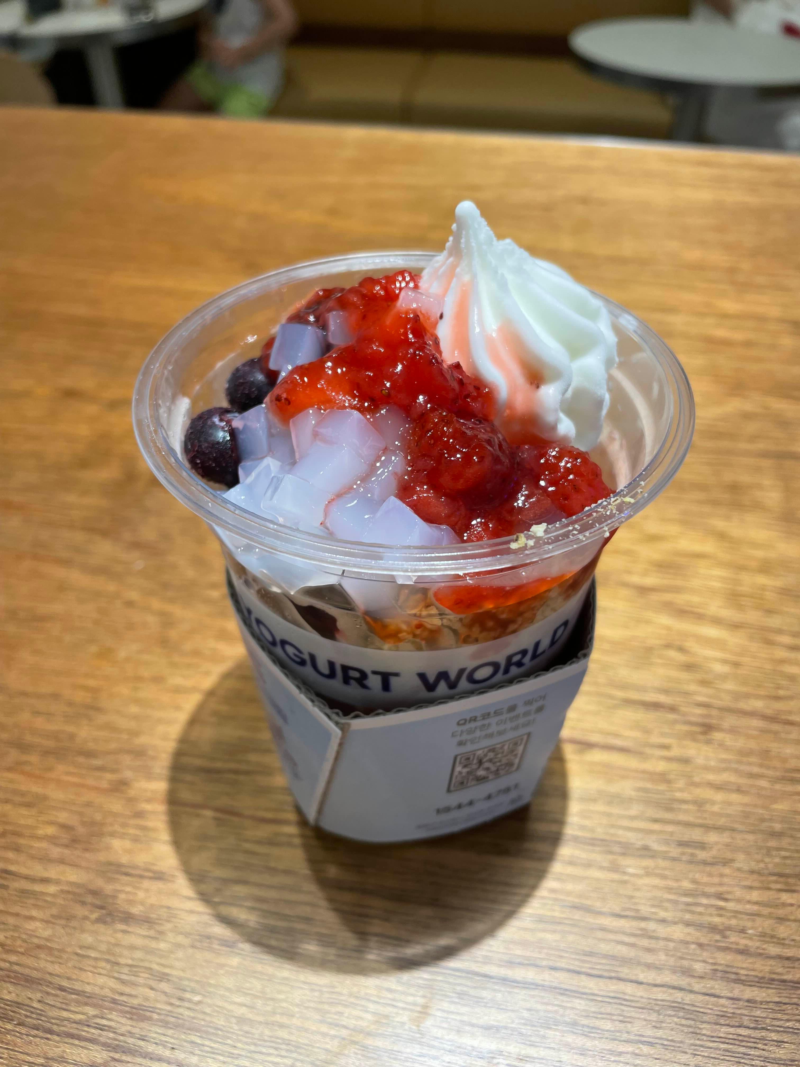 의자에도 아무도 앉아 있지 않았고 저희도 구매 후 빠르게 실내도 들어와서 요거트 아이스크림 먹었어요.